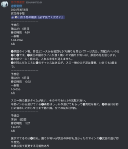 基本的には毎朝10時までにディスコードで予想を配信します。